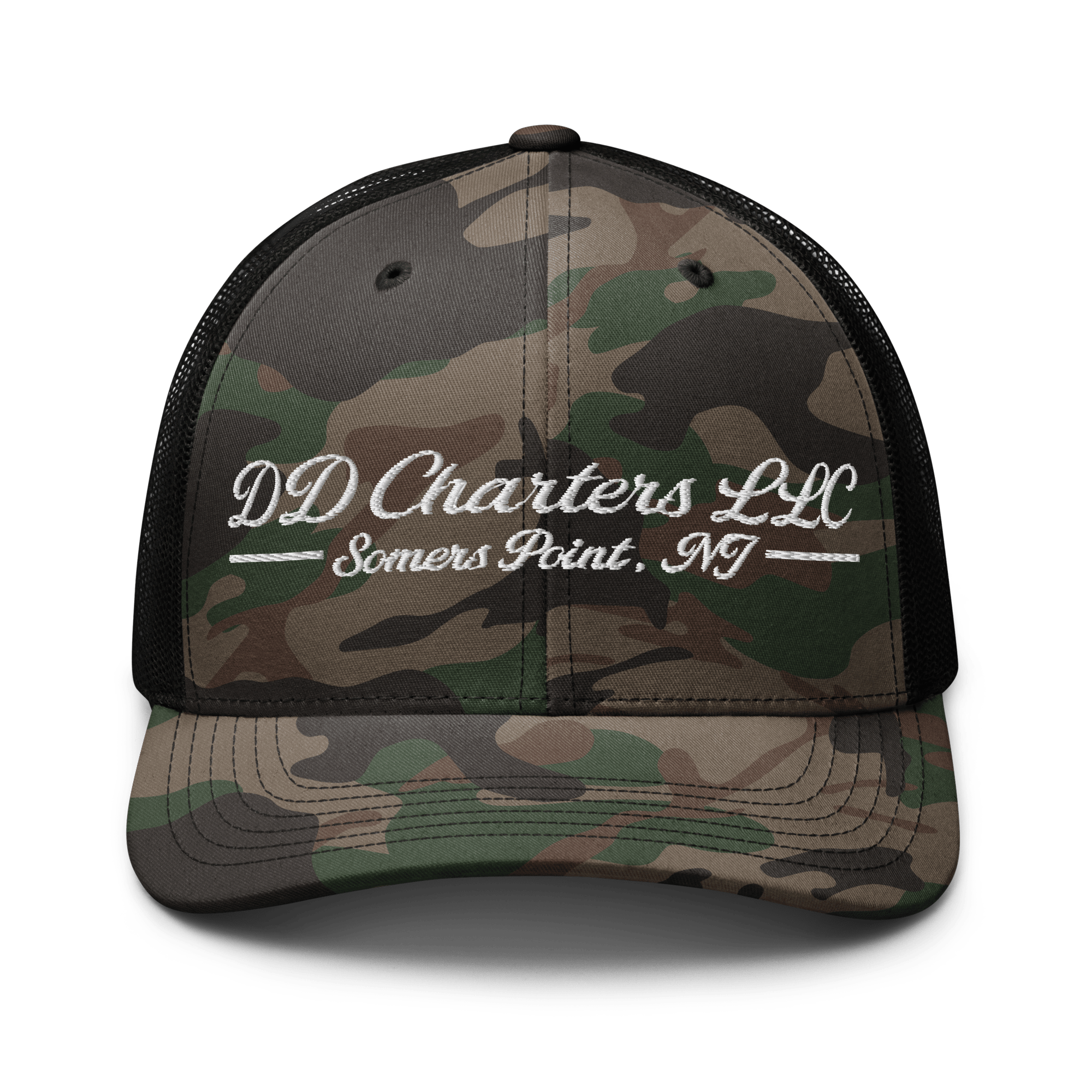DD Charters Script Camo Trucker Hat